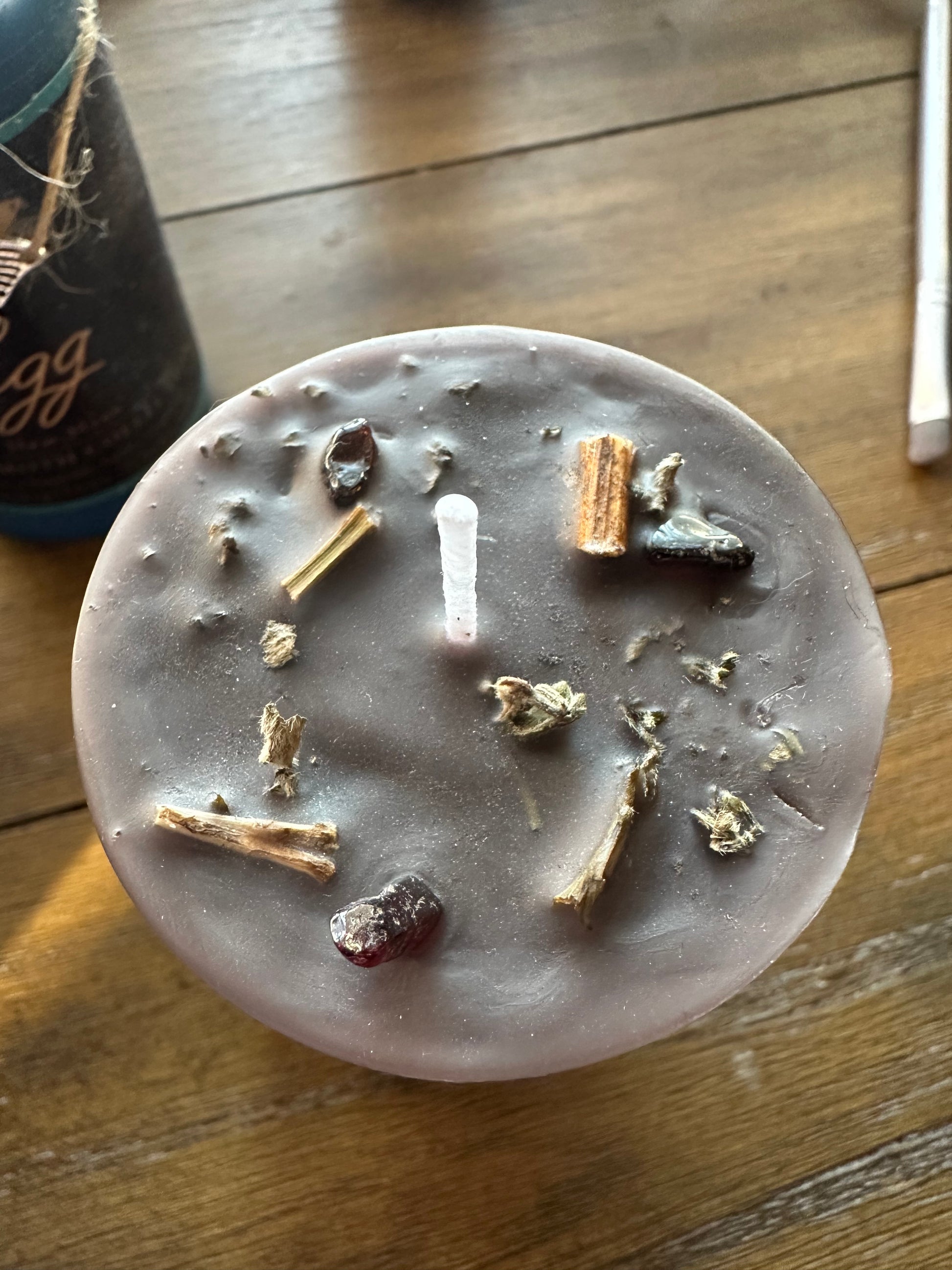 - Censing: gently waft the candle's smoke/scent toward the sigil three times, saying: "Unmake what is false. Keep what is mine."